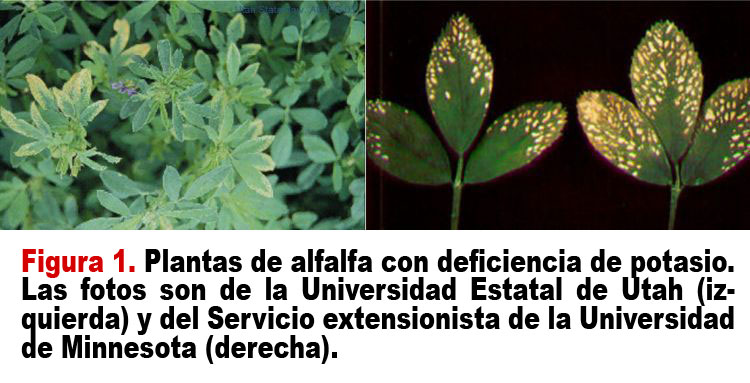 En una ocasión, un productor me pidió revisar uno de sus cultivos de alfalfa que tenía un crecimiento muy desigual. El terreno incluía varias áreas elevadas, donde la alfalfa estaba mal desarrollada y presentaba una coloración amarillenta. A menudo, esperamos que las áreas bajas en un campo tengan menor producción, debido al drenaje deficiente, pero aquí no era el caso. Mientras que la alfalfa en el resto del campo se veía normal, la alfalfa en esas áreas elevadas tenía los signos clásicos de deficiencia en potasio, incluyendo manchas claras en las orillas de las hojas. Le pregunté al productor si había hecho análisis de suelo recientemente y me dijo que sí. El análisis mostraba un nivel de potasio en un rango medio, pero no lo suficientemente bajo como para desencadenar una deficiencia en el cultivo. Como la alfalfa en el resto del campo no mostraba señales de deficiencia en potasio, le sugerí tomar una muestra de suelo combinada solamente de las áreas elevadas, que representaban un cuarto del total de terreno cultivado.